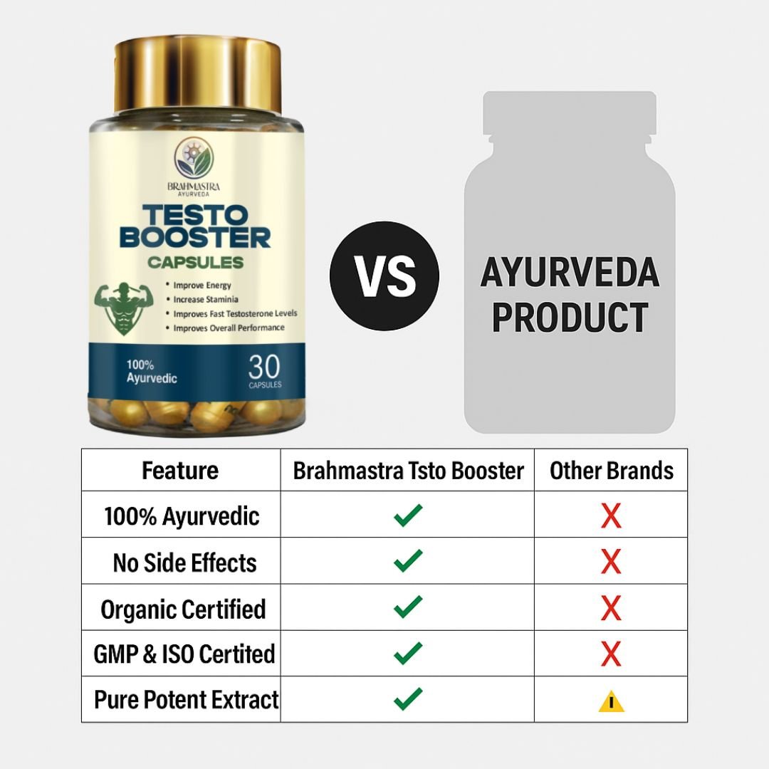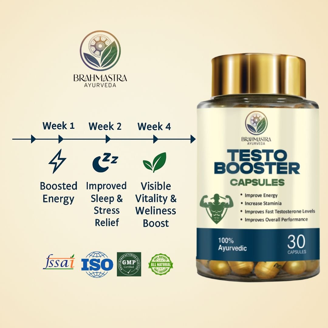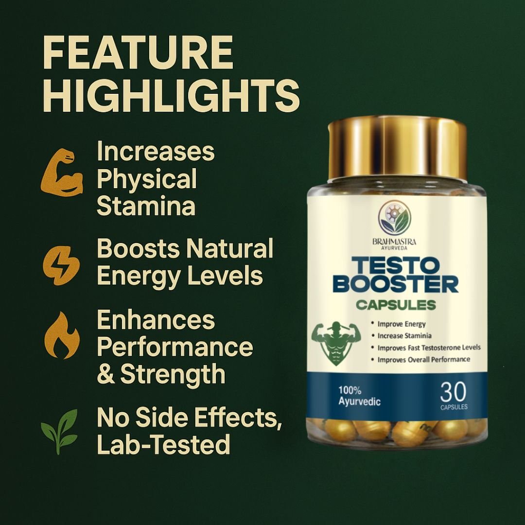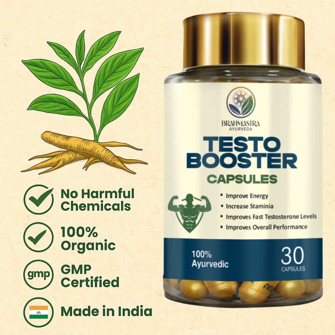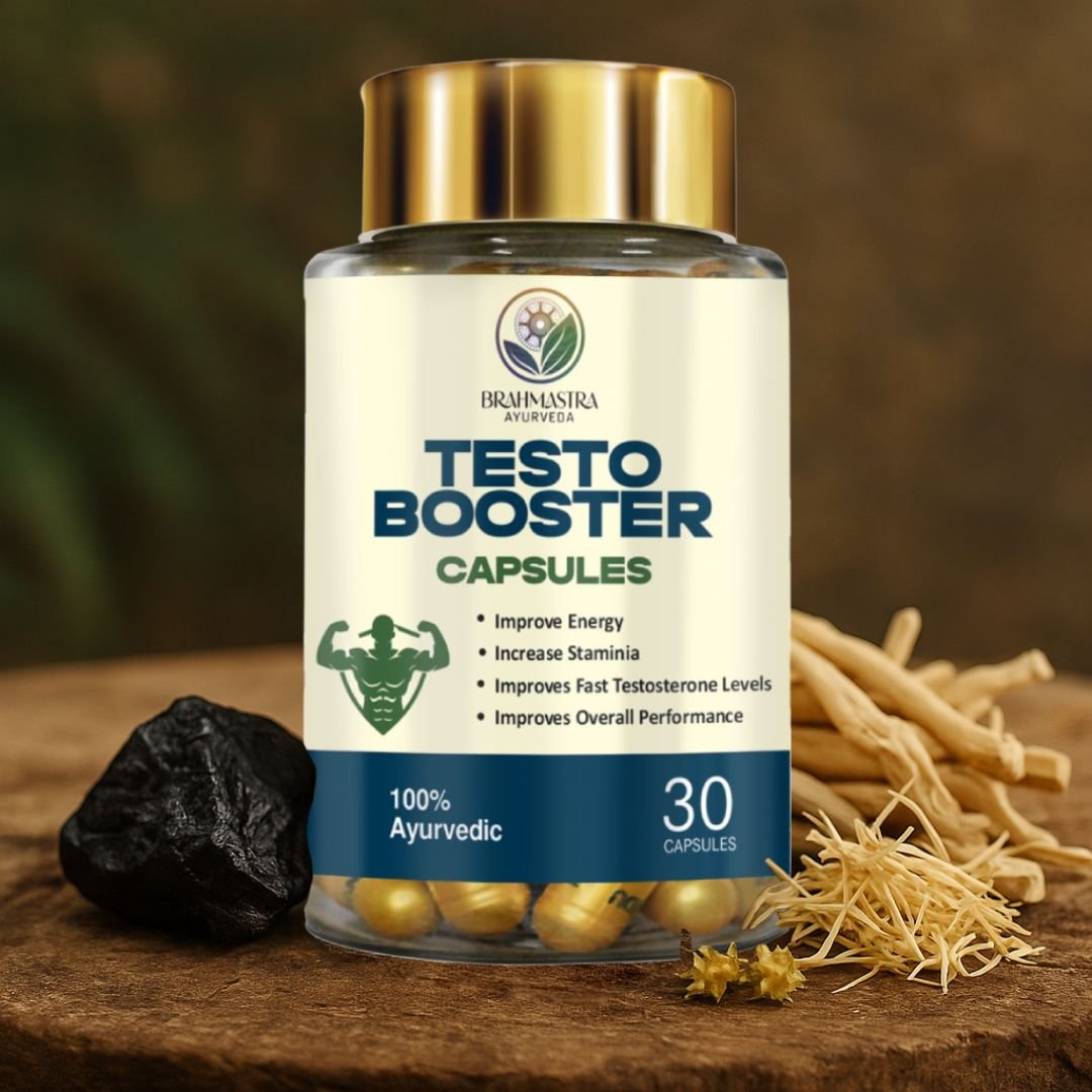 Brahmastra Ayurveda Testo Booster is a powerful Ayurvedic supplement designed to naturally enhance testosterone levels, stamina, and overall male vitality. Rooted in ancient Ayurvedic wisdom and supported by modern science, this formula helps men regain energy, strength, and daily performance—without synthetic chemicals.